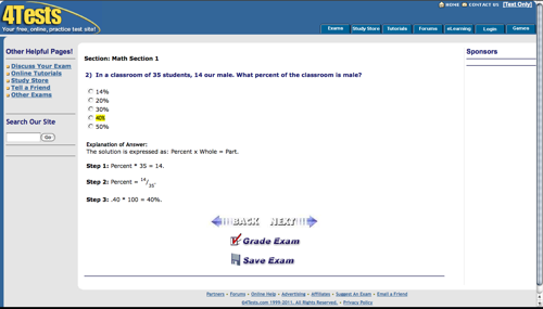 Đây là website chuyên cung cấp các bài tets miễn phí bao gồm 4 thể loại: Educational exams (SAT*, ACT, CLEP*, AP*, GED, GMAT, GRE, LSAT), Computer exams (MCSE, MCSD, Sun Java, Windows 2000, Windows NT, Visual Studio, Office, A+), Professional exams (Legal, Medical, Accounting) và Fun exams (IQ, TV Quiz, Movie Quiz). 4tests phù hợp hơn với những bạn mới sử dụng. Các loại tests mà web này cung cấp tuy đa dạng nhưng không chuyên sâu vào một chủ đề. Tuy nhiên, các bạn mới học hoàn toàn có thể bắt đầu với 4tests và dần dần làm quen với các website chuyên sâu khác sau.