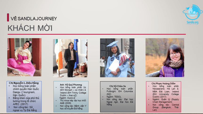 Phần 1: My story – Các khách mời chia sẻ những câu chuyện, những bài học rút ra được của bản thân trong quá trình tìm kiếm học bổng đầy thử thách, cũng như trong chuyến hành trình thú vị đến những đất nước xa xôi.